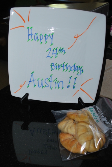 Big sister, Britni decorated the plate for him and I brought him some sugar pies.